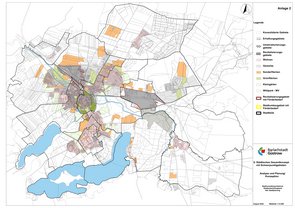 - von Bereichen, die keinen wesentlichen Änderungs- und Entwicklungsbedarf aufweisen (Konsolidierte Gebiete),