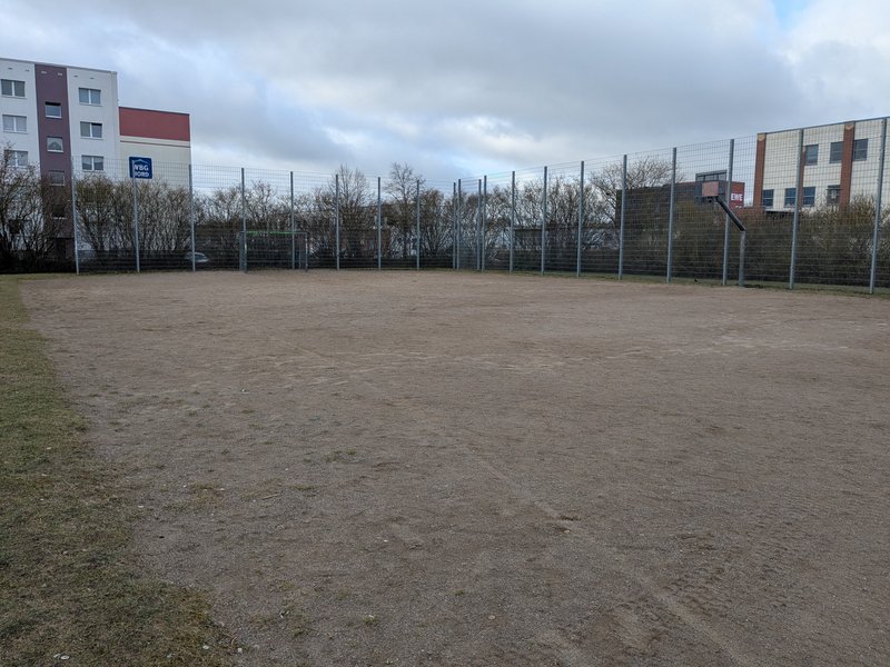 Ausstattung: drehbare Seilpyramide, Sandspielturm mit Rutsche für kleinere Kinder bis 6 Jahre, Spielgerät mit Rutsche für Kinder von 6 bis etwa 12 Jahre, Wipptier, Jugendhütte, Jugendtreff, 2 Kleinfeldtore, 1 Basketballkorb